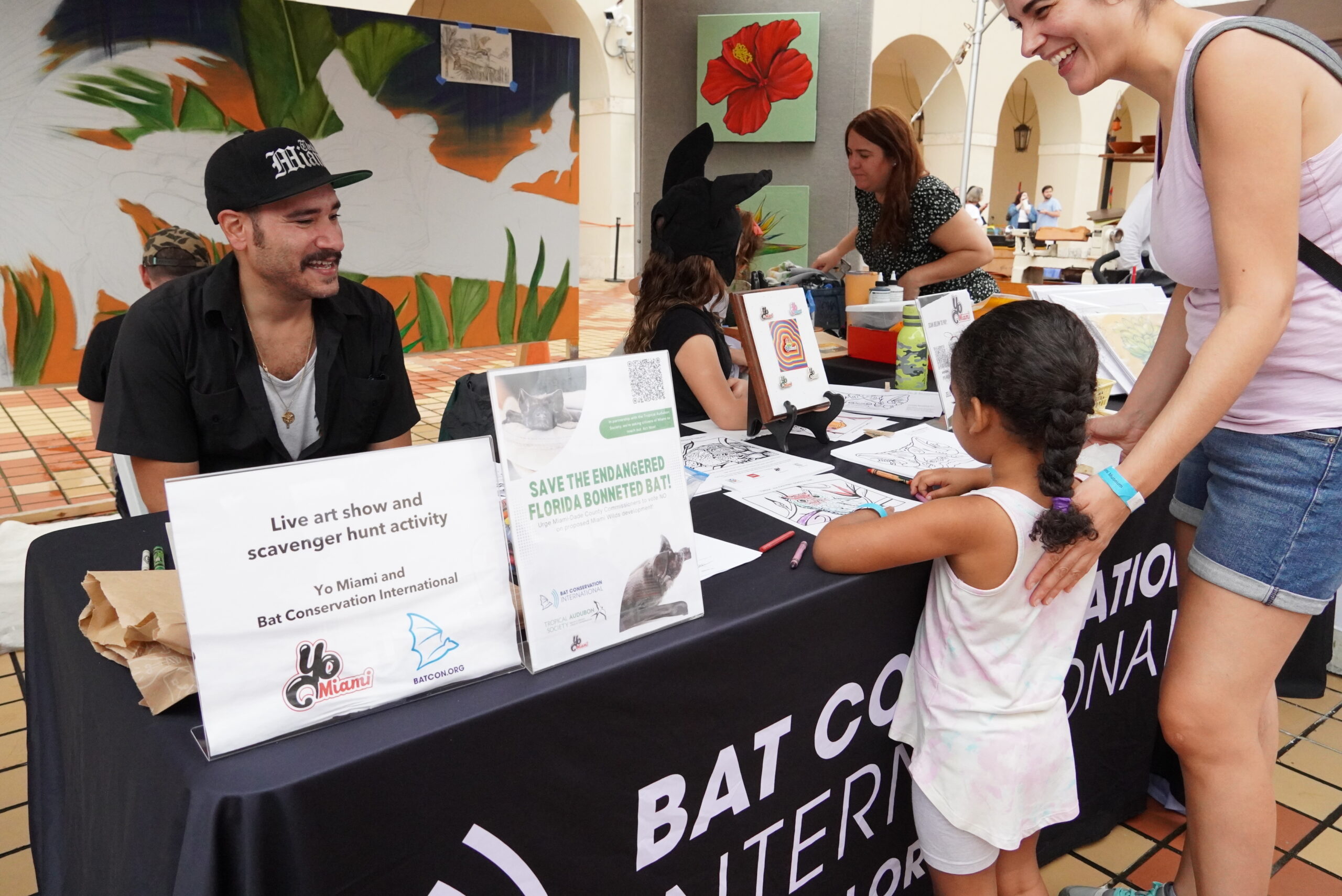 As part of HistoryMiami’s annual Culturefest 305 event, we created a bat scavenger hunt to raise awareness and support. Our team handled all aspects of design and event production, including creating and placing acrylic bat cutouts throughout the museum on the day of the event. We provided photos of the activation, coloring sheets, and cut-out bat masks for children. Additionally, we hired David Lavernia, a local artist, to live-paint a conservation-themed artwork during the event, which will be auctioned off to benefit Bat Conservation International’s mission.