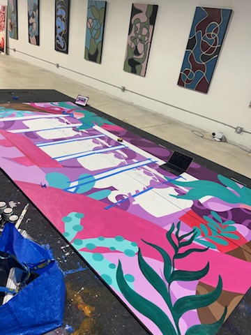 We vetted and facilitated introductions to various fabricators for the backdrop wall, helping Reyna navigate potential challenges early on to ensure a seamless build. Ultimately, we connected her with the vendor who successfully completed the fabrication. Additionally, we sourced potential temporary studio spaces where she could paint the piece before installation, though she ultimately secured a location through her own network due to pricing and other considerations.