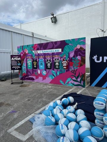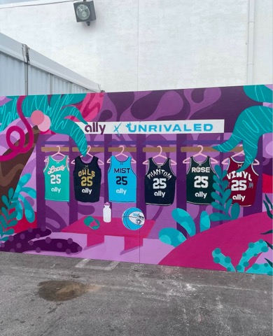 In January 2025, artist Reyna Noriega brought us on to consult on logistics and location scouting for a temporary studio space while developing a large-scale photo opportunity backdrop for Ally and Unrivaled. The installation was set to be featured at the entrance of the venue hosting women’s basketball games, making visibility and execution key factors in the planning.